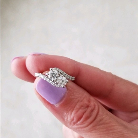 Blue Nile ring with two prong set, round diamonds both .36 carats Clarity grade SI2 Color grade I. Also contains twenty two pave set round diamonds. Total .24 carats. Have recent appraisal of $3156.00. Selling for $1000.00