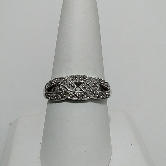 Platinum over 925 sterling silver genuine diamond ring. Fully finished comfort fit. Like new. Never worn. April birthstone.