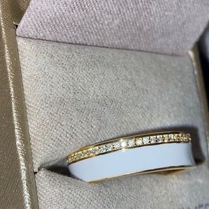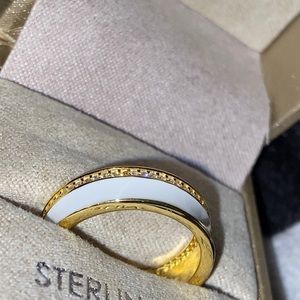 Never been worn (only for pictures) size 6 ring. Gold plated with Diamonds all around. White band. Comes in the original box.