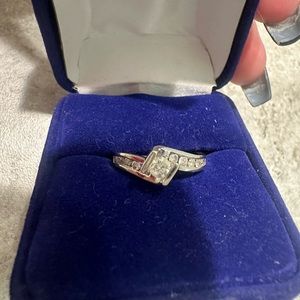White gold diamond ring 1/2 karat center stone and small diamonds on each side of twist equaling almost 1 karat diamonds in all.