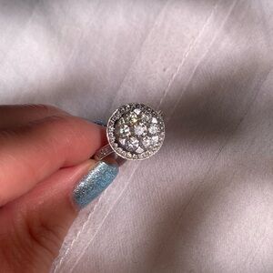Diamond platinum ring features a stunning diamond cluster design, up to 2 karat