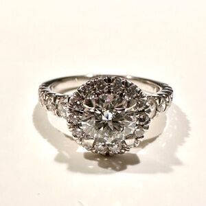 Lady's Platinum High Polish Halo Diamond Complete Ring Size 6 With 26= Round Brilliant G-H VS-S|1