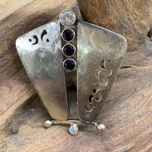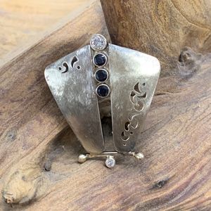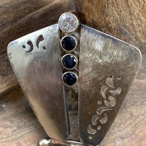 Custom gold & silver pin/pendant with diamonds and sapphires