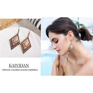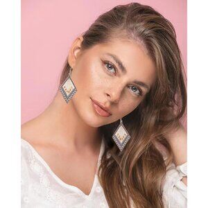 Diamond Shaped Brown Gold Boho Dangle Statement Vintage Dainty Earring for Women