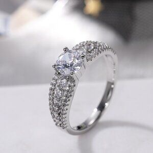 🌸Diamond Shiny CZ Romantic Pure Silver Dainty Wedding Ring for Women, K868