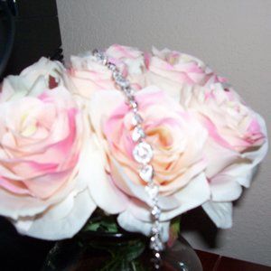 Beautiful diamond simulate bracelet, rhodium plated to prevent tarnishing, 7" long. This bracelet would be classy for a wedding or party.