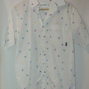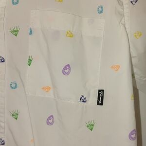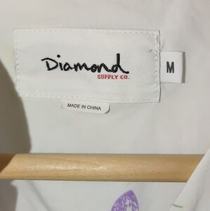 Diamond Supply Co. Short Sleeve Button Front Shirt Novelty Gem Pattern M White