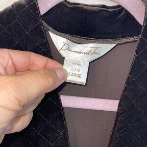 Diamond Tea Womens Robe Size Large Brown Full Zip Velvet Pockets Quilted