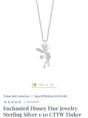 Enchanted Disney Fine Jewelry Sterling Silver 1/10 diamond CTTW Tinker Bell Disney Pendant