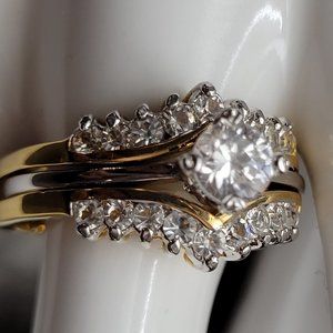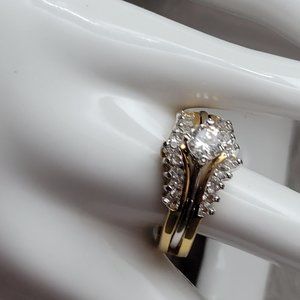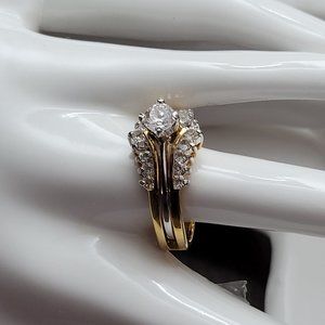 Diamond Zirconia Engagement Ring three in one Detachable Promise ring and Guard
