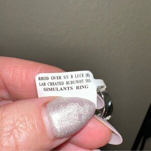 Brand new with tags ring in sterling silver with lab rubies and lab diamonds