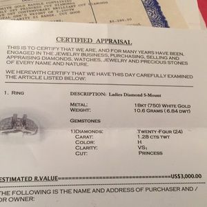 This is a beautiful ring set in 18 karat white gold with 1.28 carats total weight of princess cut diamonds appraisal without the pearl is US$3000, but with the pearl added The entire ring is $4000.