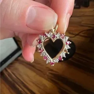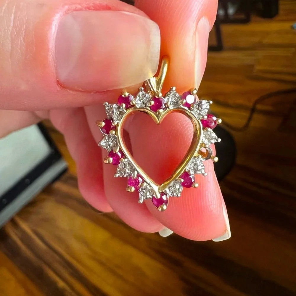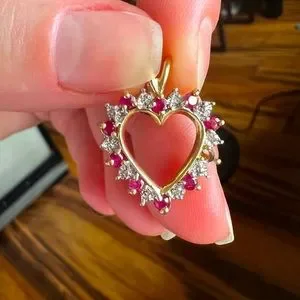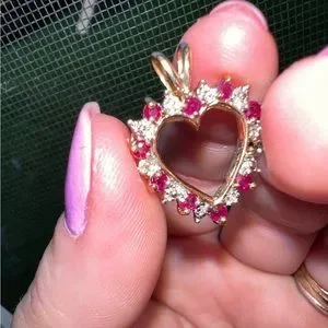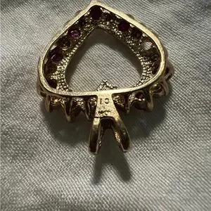 Upon taking photos for the listing I noticed that a Ruby had fallen out. Easily replaced by your local jeweler. I know my Mom had it done for an older piece of her jewelry and it was pretty cheap. Doesn’t affect wear and I honestly didn’t notice until I was zooming in on pics.