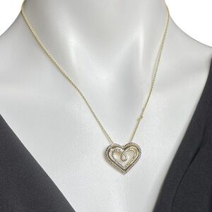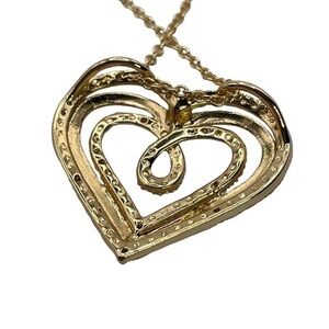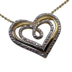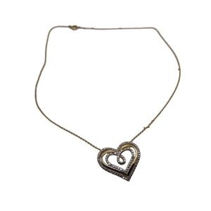 Heart necklace Two tone Very small diamond accents A couple small kinks in chain Triple heart