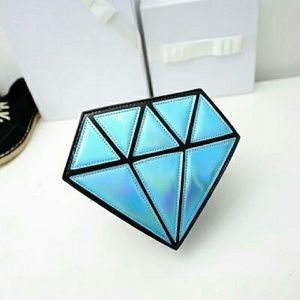 Small crossbody bag, iridescent exterior. Very striking. This bag is just big enough for phone, keys, and a lip stick. Crossbody chain is great for going out.