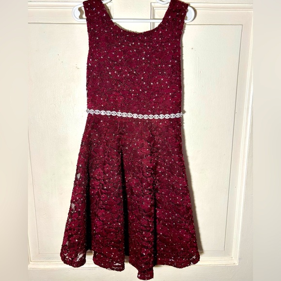 Diamond maroon lace dress
