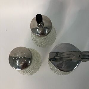 Diamond point Vintage cut glass sugar creamer 0929 cinnamon holder grace mcm