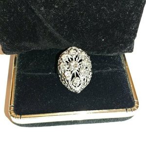 @missashleydaley yes the diamonds are real and is 9 of them and it's one full carat I have the appraisal with the ring from a well known jewerly store!!!