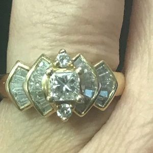 Princess cut diamond ring with band. 14k yellow gold. 1 carat total weight.