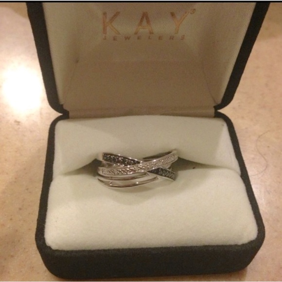 Black and clear Diamond ring in sterling silver. Can be resized.
