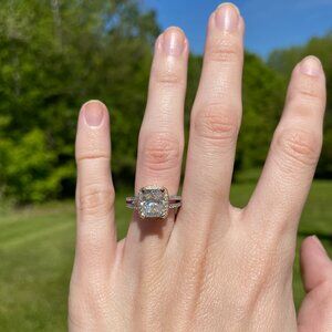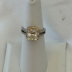 Beautiful 2.8 ct Natural diamond, j color, vs clarity center stone surrounded by diamonds in a two tone 14k gold setting. Excellent cut with exceptional sparkle.