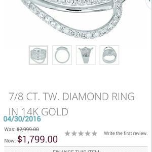 7/8 total carat weight, 14k white gold, sz 7.25. Very pretty only worn once diamond statement ring. Im moving and needing it gone asap.