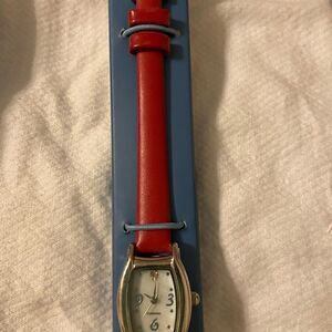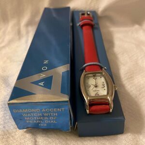 AVON Diamond Accent Watch With Mother of Pearl Dial Red Strap NEW NOS.