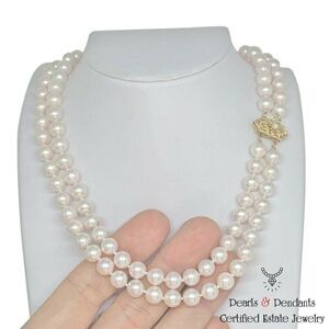Fine Quality Akoya Pearl Diamond Necklace 8 mm 14k Gold 2-Strand Certified $9,750 010933