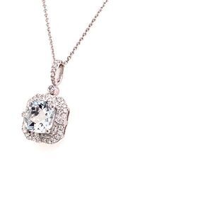 Diamond Aquamarine Necklace 18k Gold 18" 2.24 TCW Certified $3,950 920940