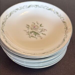 Diamond China Romance White and Green Floral Salads Plate Set of Eight