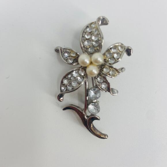 Add a touch of timeless elegance to your collection with this beautiful diamond and flower brooch! This piece features a delicate floral design adorned with sparkling diamonds, perfect for adding a sophisticated accent to any outfit.