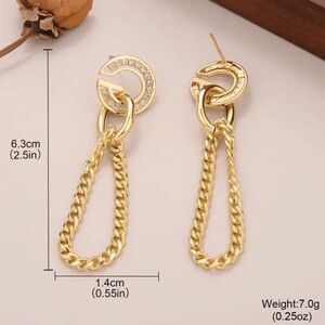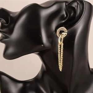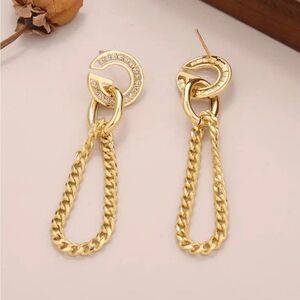 Diamond G 14k Gold Plated Chain Tassel Earrings