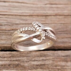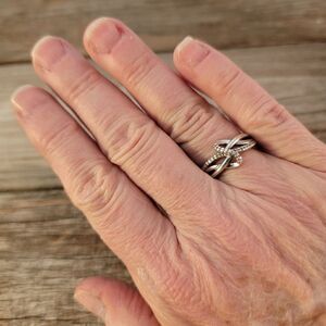 Elegant diamond ring sterling silver in flowing openwork ribbon design. Diamonds and sterling tested as genuine.