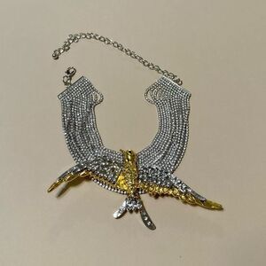 Luxury multi layered rhinestone decor bird choker necklace in gold and silver tone hardware