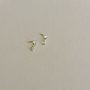 Diamond dangle stud earrings in gold tone hardware