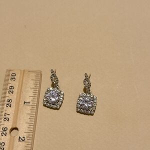 Luxury Diamond decor dangle stud earrings in silver tone hardware
