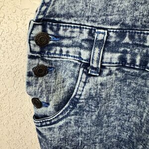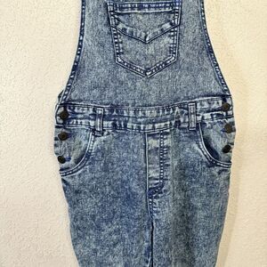 Add a touch of bohemian and 90s vibe to your wardrobe with these overall denim jeans from Diamonds And Threads. These jeans feature a button closure, acid wash fabric, and pockets for convenience. The mid-rise fit is perfect for any season, whether it's winter, summer, fall, or spring.