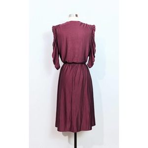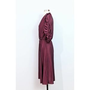 This dress is late 70s/early 80s and therefore one of my favorites! It has a deep, wine red color with black stripes. It's a faux wrap and I love the ruching on the sleeves. Just gorgeous and perfect for a holiday party!