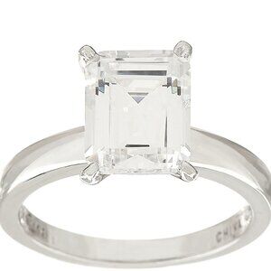⭐️Diamonique 3.00 cttw Emerald-Cut Solitaire Ring, Platinum Clad, Sz 9