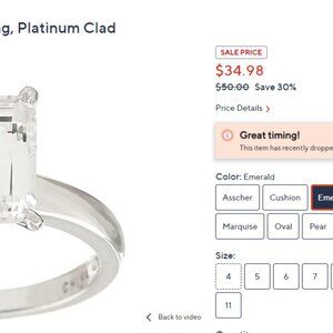 BOGO w any other yellow star ⭐️ item! For a limited time ! Just create a bundle of 2 qualifying products and you'll get an offer for the cost of the more expensive item! Best diamond simulate in the world!! The one. A single cubic zirconia Diamonique(R) simulated diamond beckons from atop this gorgeous ring. Crafted of platinum-plated sterling silver,the rounded band is a sleek foundation for the stunning sparkler. Platinum Clad(R) sterling silver is polished sterling silver plated with platinum to create a timeless look at a fraction of the cost of platinum. Emerald Cut Brightly polished platinum plated over sterling silver Total Diamonique simulated diamond weight is approximately 3.00 carats; simulated diamonds are cubic zirconia Raised, prong-set, Diamonique simulated diamond at center; highly polished rounded band Measures approximately 1/8"W Imported