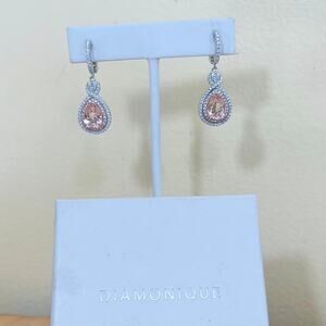 Diamonique Sterling Earrings Simulated Morganite Dangle Drop Silver