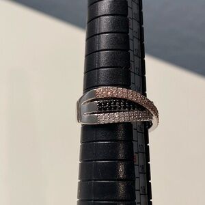 🖤🤍🩷 White and black Diamonique simulated diamonds create the stunning look of this crossover band ring.
