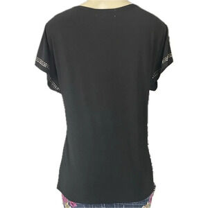 Diana Belle XL Black Caged Neckline Studded Accent Short Dolman Sleeve Top