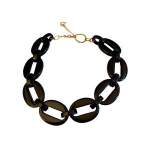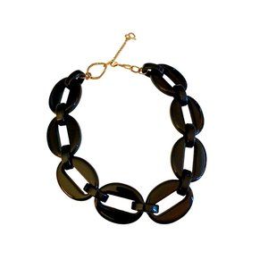 Diana Broussard Carly Black And Gold Tone Chunky Statement Choker Necklace 23"