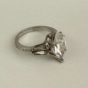 Keywords: vintage cocktail ring, marquise baguette ring, retro glam jewelry, 80s bridal ring, 10K HGE electroplate