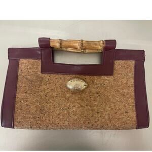 Diana E Kelly CORK GLITTER Handbag MaroonTrim Gold Football w/ Bamboo Handle