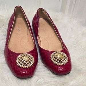 Diana E Kelly Red Leather Flats with Embellishments Women's Size 8.5.🌴