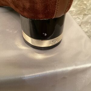These pretty shoes are theDiana E Kelly brown suede ballet flats/pumps with crystal embellishment and a round toe. The Diana E. Kelly brand focuses on elegant, classic, and comfortable leather shoes for women, often featuring a distinctive, signature brooch or embellishment on the toe. The collection included pumps, sandals, and wedges.