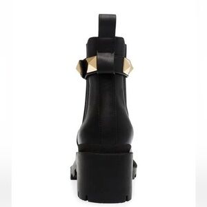 A classic chelsea boot in platform heel featuring stud detailing touch strap belt with pull tab for easy wear.