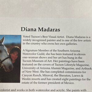 This beautiful framed print by Diana Madaras is a must-have for any art lover. The portrait orientation of the 23-inch height print is perfect for displaying in any room. The print is from the contemporary period, produced between 2000-2009 in Arizona, USA.